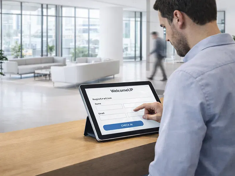 WelcomeUP è la soluzione ideale per le aziende che vogliono automatizzare i punti di accesso e uscita in azienda, ed ottenere un servizio completo e rivoluzionario in termini di controllo e gestione del front office.